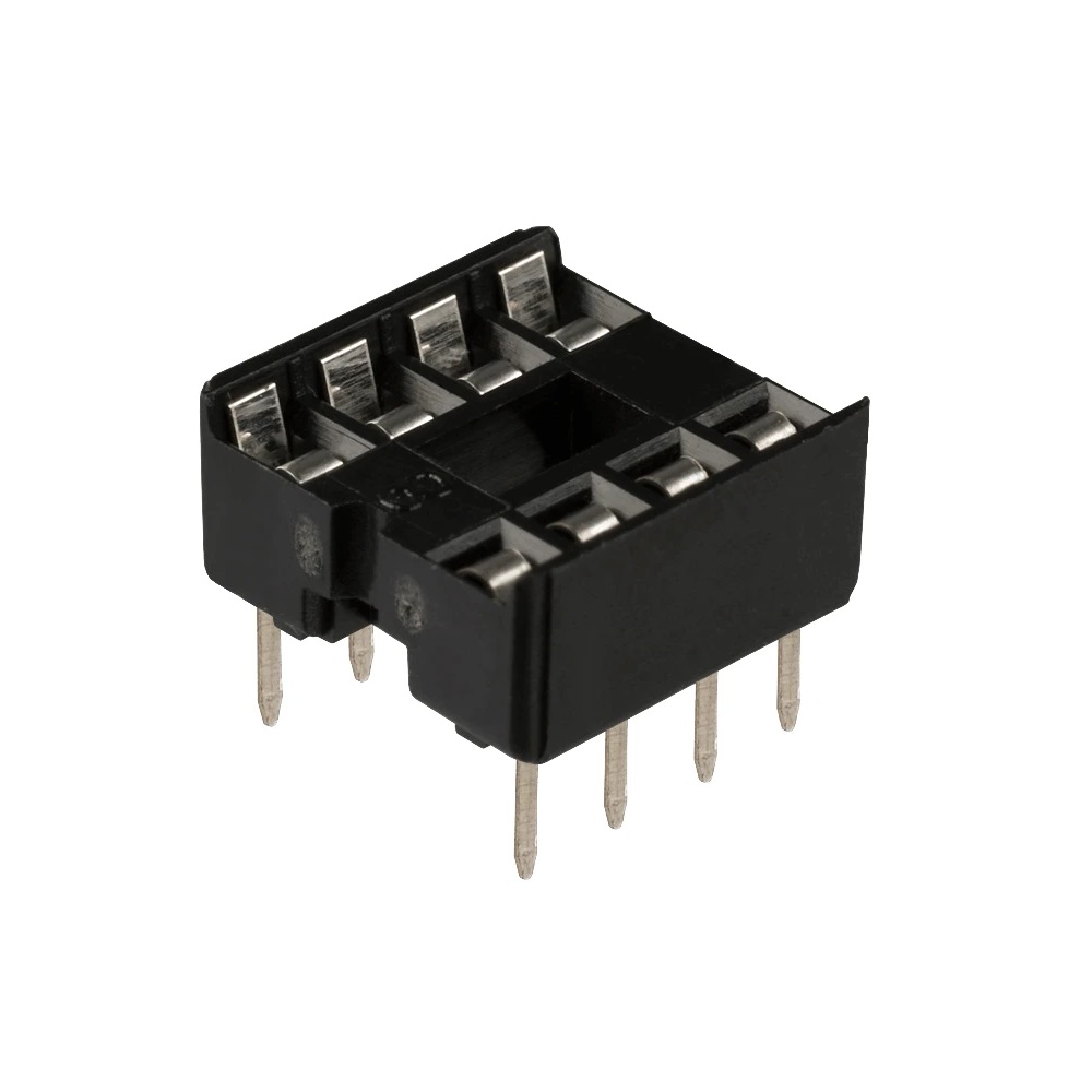 Base DIP para circuito integrado de 8 pines o agujas, para montar o desmontar un circuito integrado sin tener la necesidad de soldarlo.