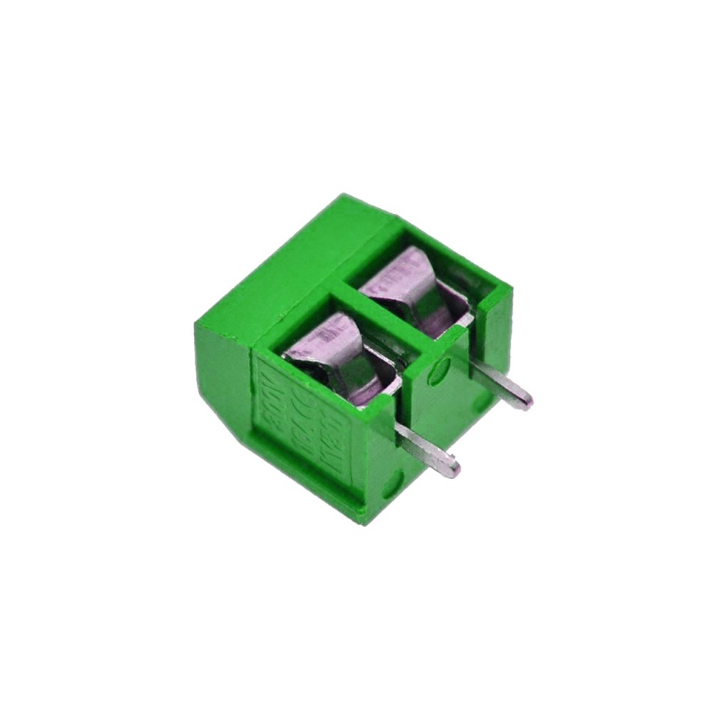 Terminal block doble con opresores para sujetar cable por medio de tornillos. Cuenta con guías para empotrarse con terminales similares a ellas útil para hacer conexiones eléctricas y/o electrónicas en protoboard o chasis.